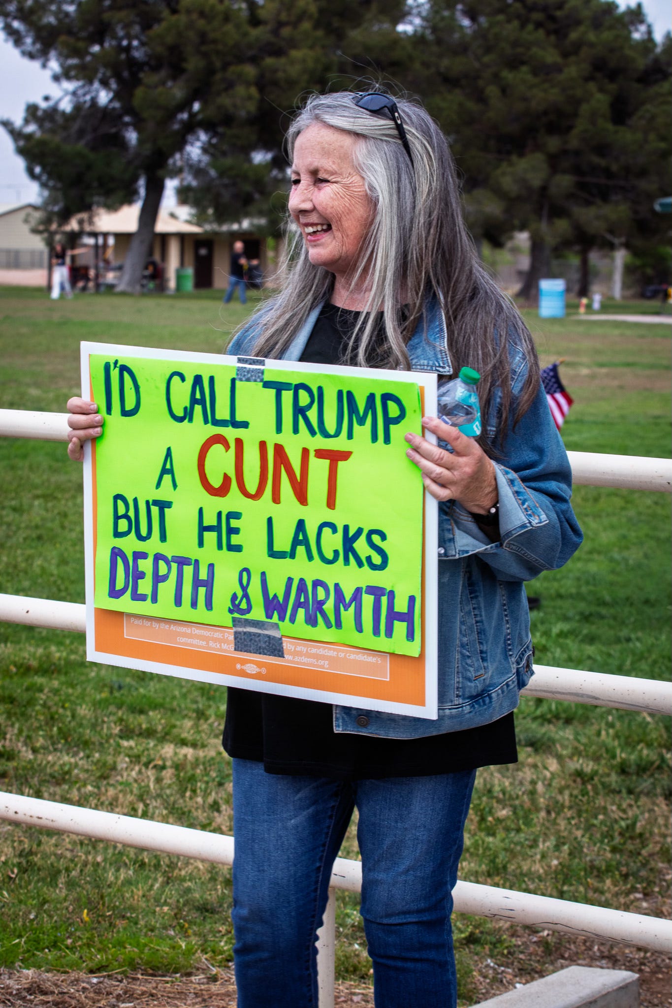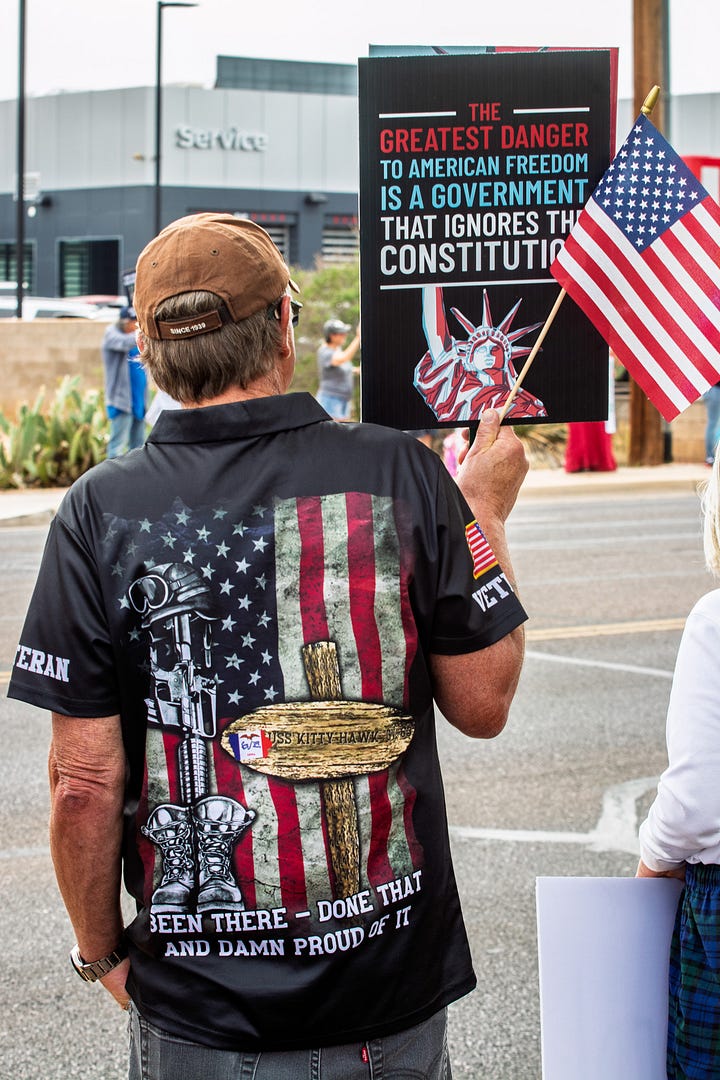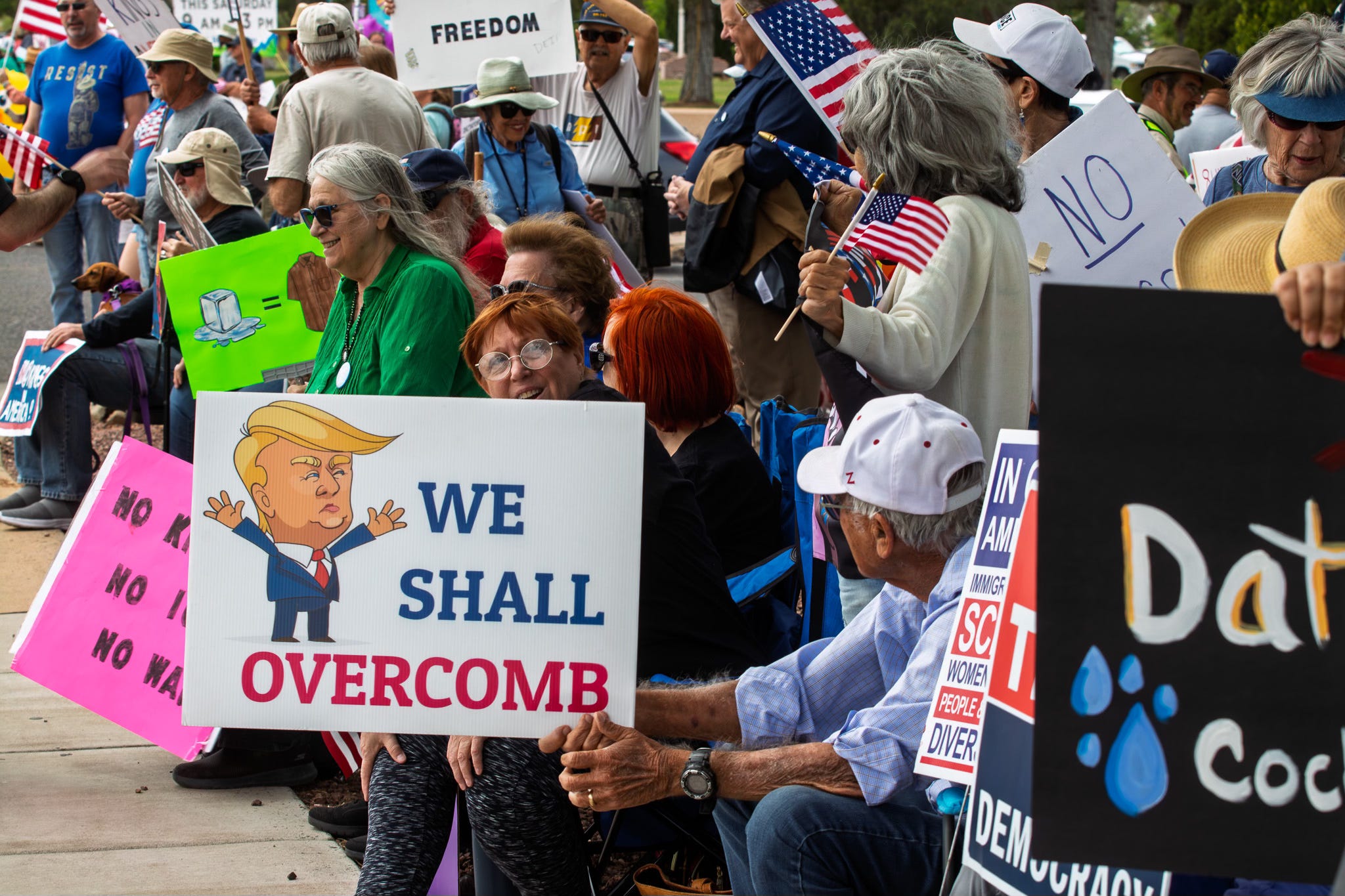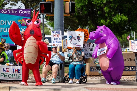 But ultimately she was mostly correct. This is a retirement town, so the demographics skew older. But it seems just about everywhere that the people showing up to many of these protests mostly have gray hair.